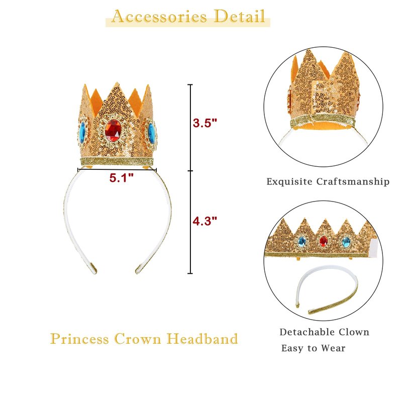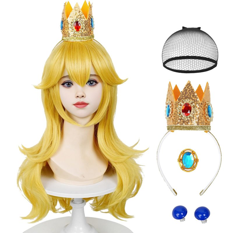 · Package includes - 1x blonde wig + 1x detachable crown + 1 x brooch + 1 x pair of earring clips + 1x wig cap