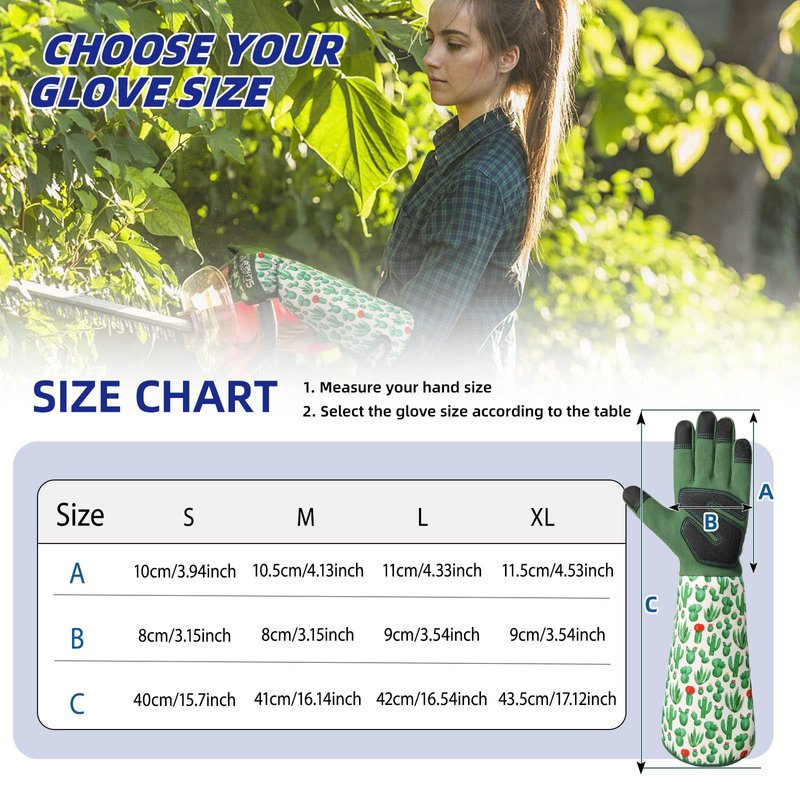- 【Women Garden Gloves】This cactus printed garden glove is designed specifically for women, and the size will be more suitable for women. It also ensures protection and breathability while considering the appearance. Wearing this glove when handling plants such as roses in the garden is a great choice. Reminder:These gloves cannot resist 100% cactus thorns. Please be careful not to get injured when using them