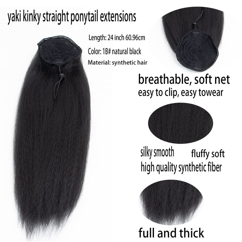 - Yaki drawstring ponytail extension: Ponytail hair extensions suitable for women's daily wear. Convinent to add hair length and fluffy volume. Long ponytail hair extensions, natural look, not heavy.