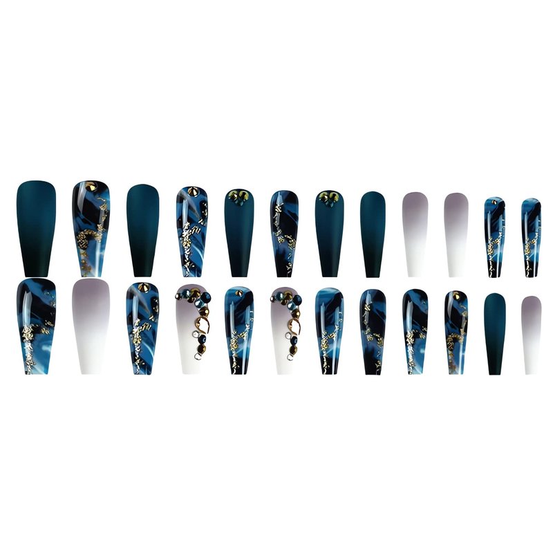 - Package Include: You will get 24 pieces of extra long blue fake nails with delicate designs, you can choose the most suitable false nail for yourself, it is easy to trim and file them to in any length and shape you like.
