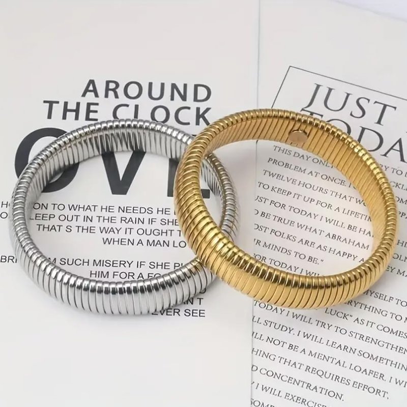 - CHUNKY BANGLE BRACELETS:This gold thick bracelet with minimalist design, simple and generous style, very with blouses, suits and other simple wear wear, but also with dresses, is a very fashionable women's jewelry items, you can rest assured to wear
