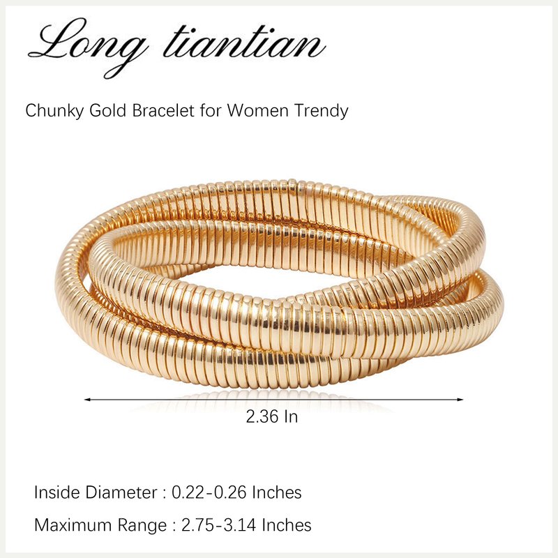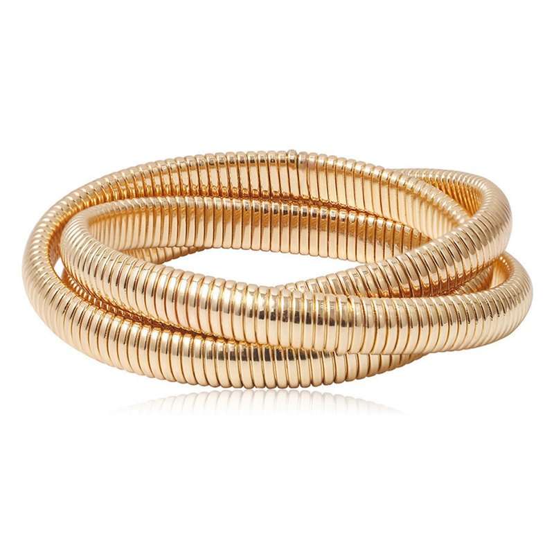 Long tiantian Triple Cobra Bracelets for Women Gold Wrap Boho Bracelet Interlocking Omega Stretch Bracelet Trendy Jewelry for Girls Gifts, Other, other