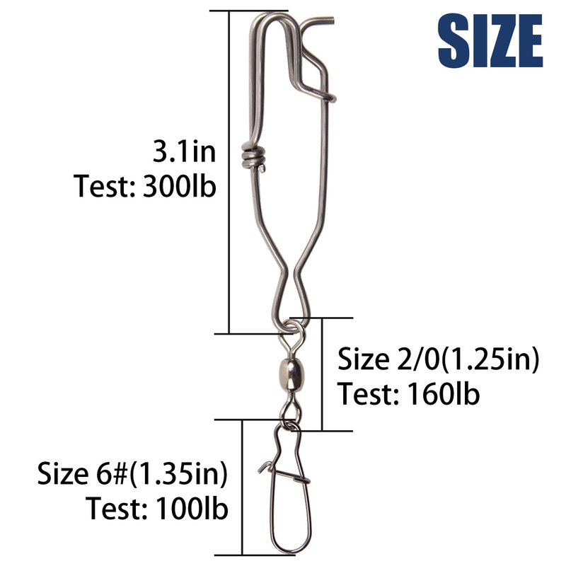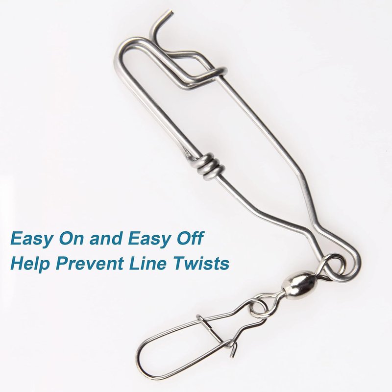 - Long line fishing clip with snap is designed for quick open lock, easy to quickly rig decoys to main line. The smooth surface would make sure not cut the line and provide the flexible connection.