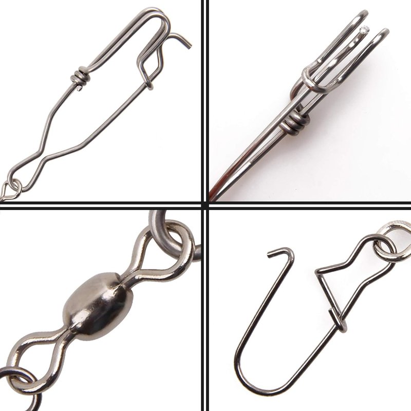- Unrestricted high-speed rotation of the barrel swivel prevents the bait rig from twisting, fishing swivels allow the bait to present more natural actions in water and reduces the dragging force from fish to protect fishing tackles.