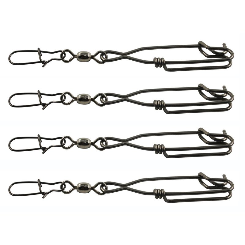 - 4pcs/10pcs longline fishing clip with duo lock snap crane swivel. Clip length 3.1inch, crane swivel size 2/0, duo lock snap size #6.