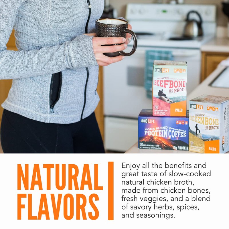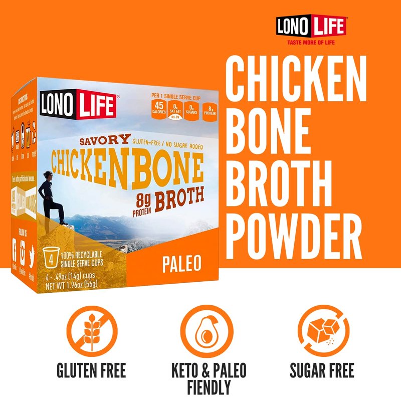 - Fast, fulfilling, and delicious natural chicken bone broth that's great for Paleo/Keto diets, pre- or post-workout power-up, refueling at the office, or snacking while backpacking