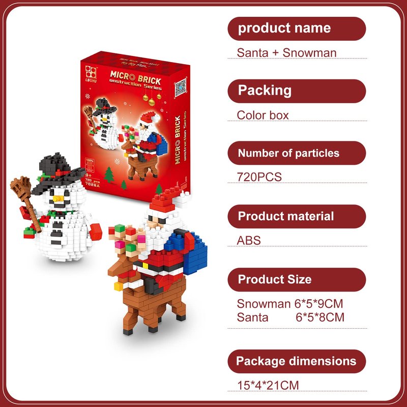 - 【One box multi-purpose】There are 720 small blocks in the box, which can be used for four different types of Christmas toys. They are Snowman / Santa Claus / Gift Santa Claus, which is very suitable for children.