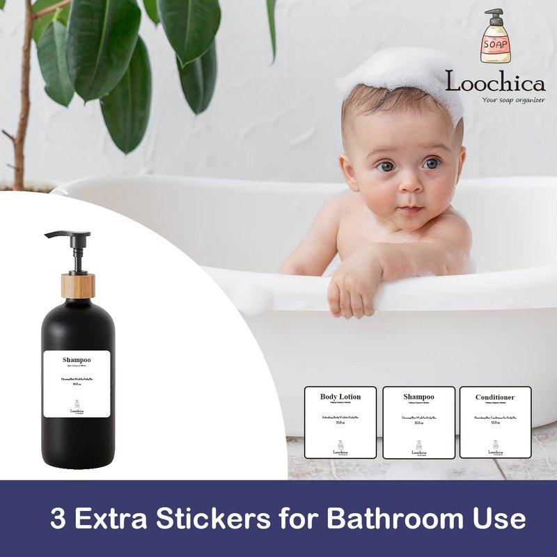 - VERSATILE & REUSABLE for BATHROOM USE - Each package comes with 3 stickers-"Shampoo", "Conditioner" and "Body Lotion". Our soap dispensers can be changed to Bathroom/Shower use by covering marks with our srickers.