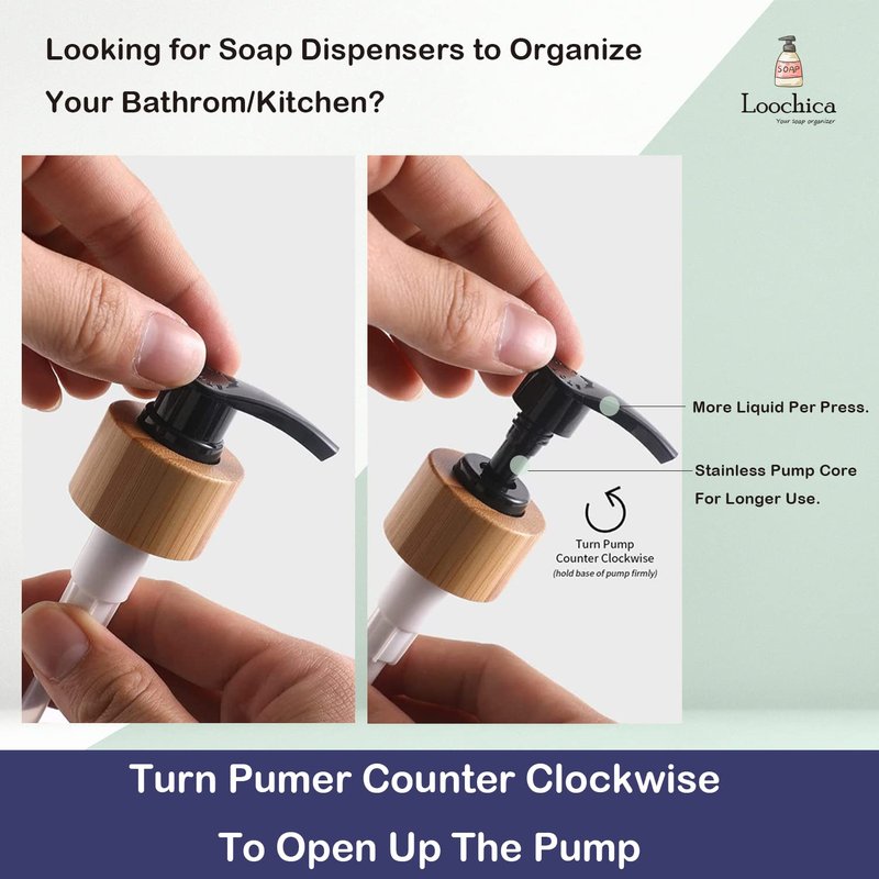- PREMIUM QUALITY & DURABLE- This soap dispenser set is made of thick quality glass, matched with a bamboo soap dispenser pump. Our soap dispensers are durable for years. Premium 2CC pump provides more liquids per press.