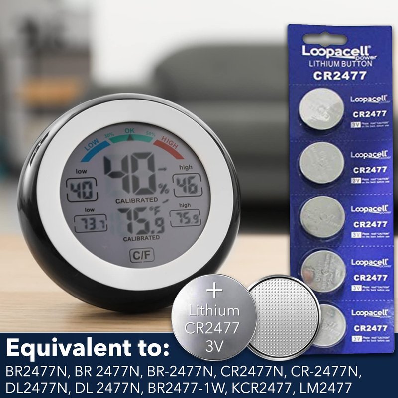 LOOPACELL CR2477 3V Lithium Cell - 3V Long Lasting Coin Cell Battery - Button Battery Cell for Indoor & Outdoor Weather Station, Hygrometer, WiFi Thermometer, Polar FT7 Watch & More