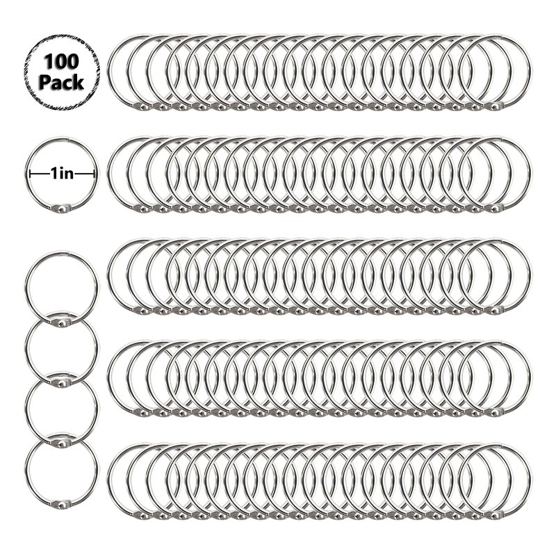 Loose Leaf Binder Rings 1-Inch(100 Pack) Office Metal Book Rings, Nickel Plated Steel Key Rings for School,Sliver