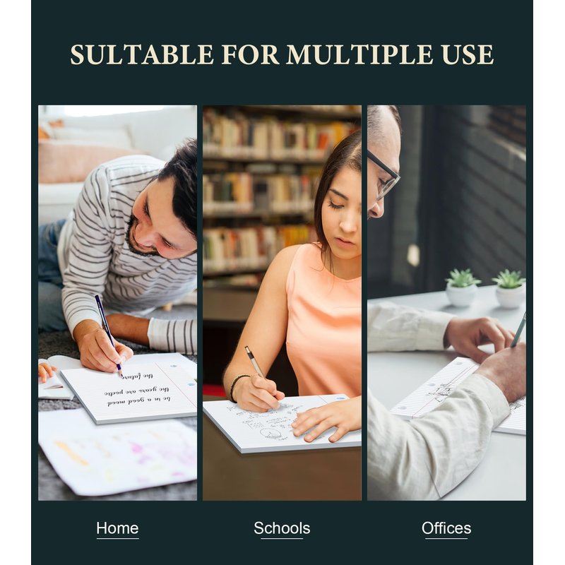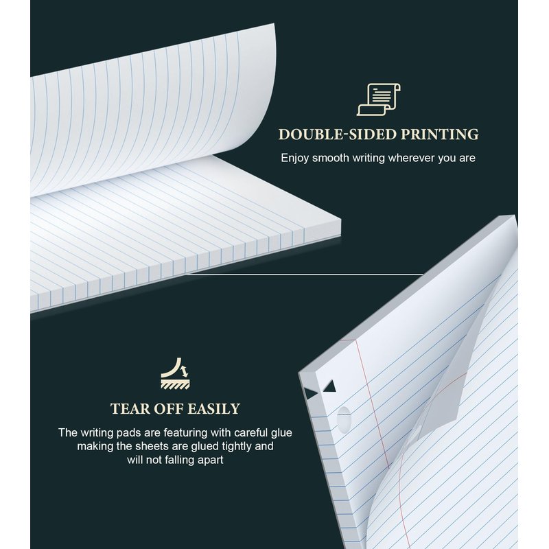 - 【Easier Writing & Reading】The writing pads 8 x 10.5 are designed for double-sided printing, providing you with double the writing space without wasting paper, this reinforced loose leaf paper pads 8x10.5 have a good weight and bright white color paper, The lined loose leaf paper is comfortable to use and not dazzling, helping record your unconstrained thinking and special moments, you don't need to worry about the inspiration being forgotten.