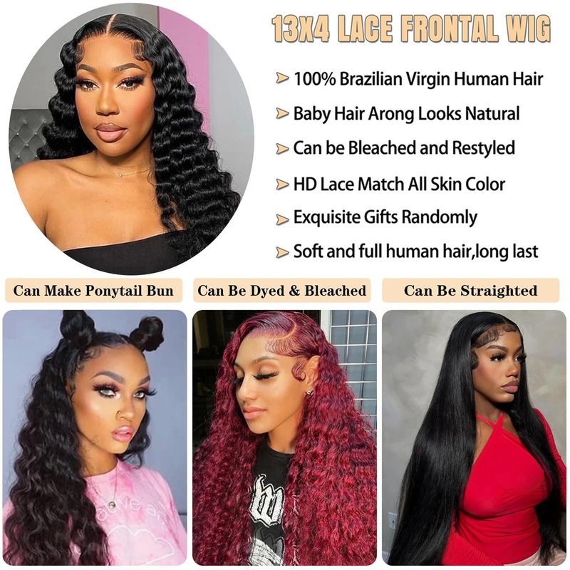 - Hair Material: 100% Virgin Human Hair Cut From Young Girl Donors, Loose Deep Wave Lace Front Human Hair Wigs ,Pre Plucked Hairline with Baby Hair,Looks Realistic as your own hair.