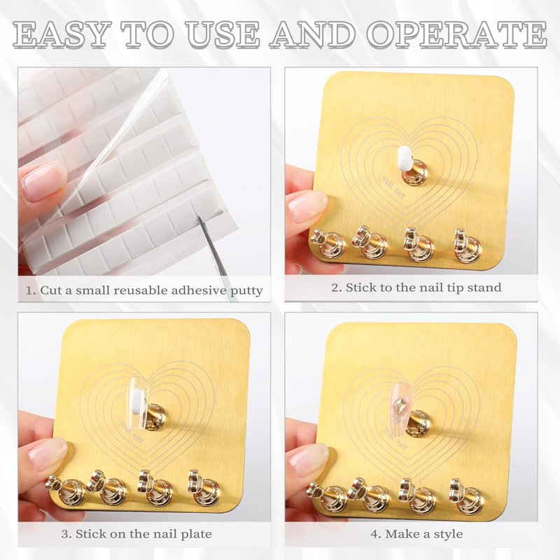- 💗【Package Included】You will receive 1pcs metal nail holder base, 5pcs heart-shaped nail stand,and 45pcs reusable adhesive putty. A complete set for perss ons.