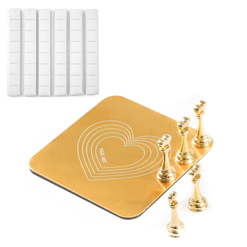 lootaan Nail Holder for Painting Nails, Heart Nail Stand for Press ons / Nail Display / Nail Practice with Reusable Adhesive Putty, Nail Tech Must Haves Nail Supplies (Gold)