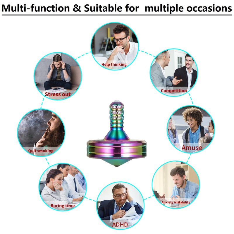 - 【Kill Time Efficiently】When you spin well, the top can spin for a long time, which can effectively kill time or even forget time. It can be used in various occasions, such as waiting for your girlfriend, waiting for food, waiting for flights, waiting for children, etc. When you are bored, playing with a spinning top is a good alternative to playing with your phone.