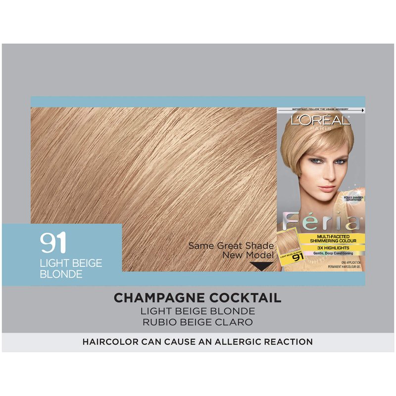 Loreal Feria Multi Faceted Shimmering Hair Color, 91 Light Beige Blonde- 1 Ea (Pack of 3)