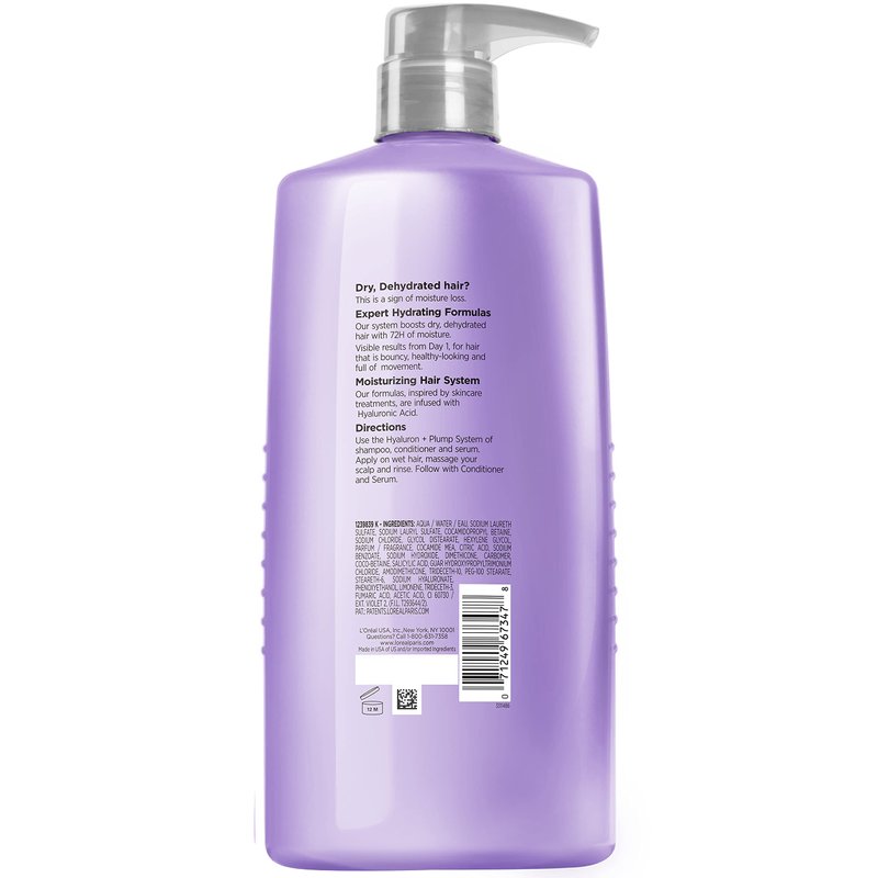 L'Oreal Paris Elvive Hyaluron Plump Hydrating Shampoo for Dehydrated, Dry Hair Infused with Hyaluronic Acid Care Complex, Paraben-Free, 26.5 Fl Oz