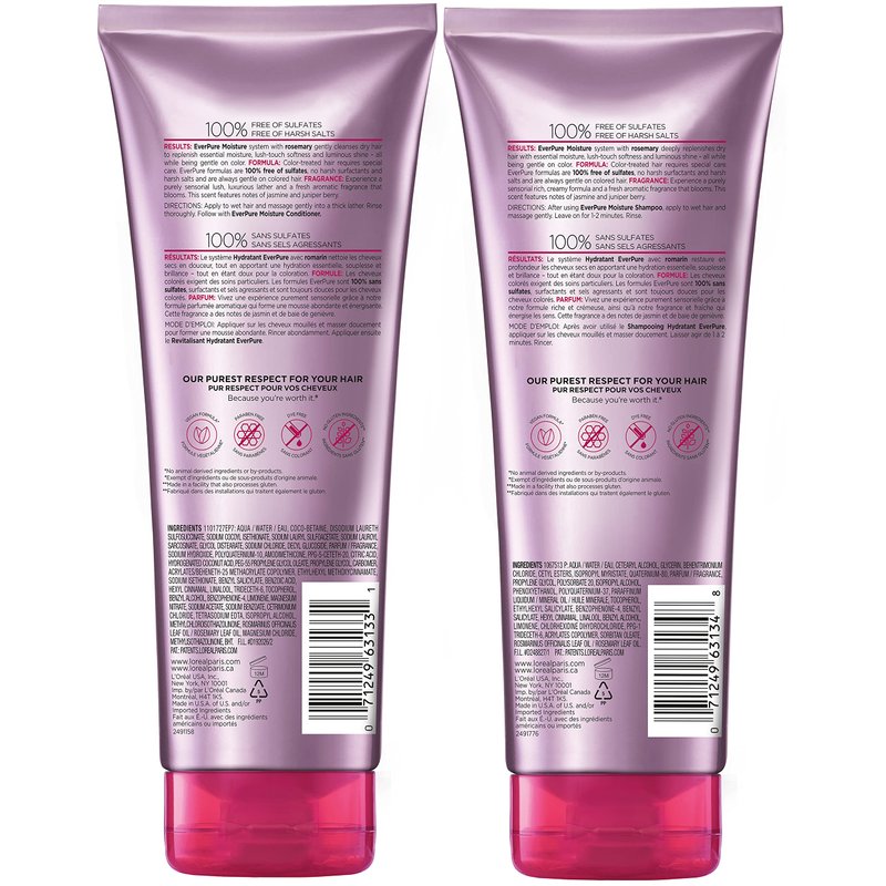 - L'Oreal Paris, Moisture Shampoo and Conditioner for Dry Hair with Rosemary, Sulfate Free & Vegan, EverPure, 11.05 Fl Oz (1 kit)
