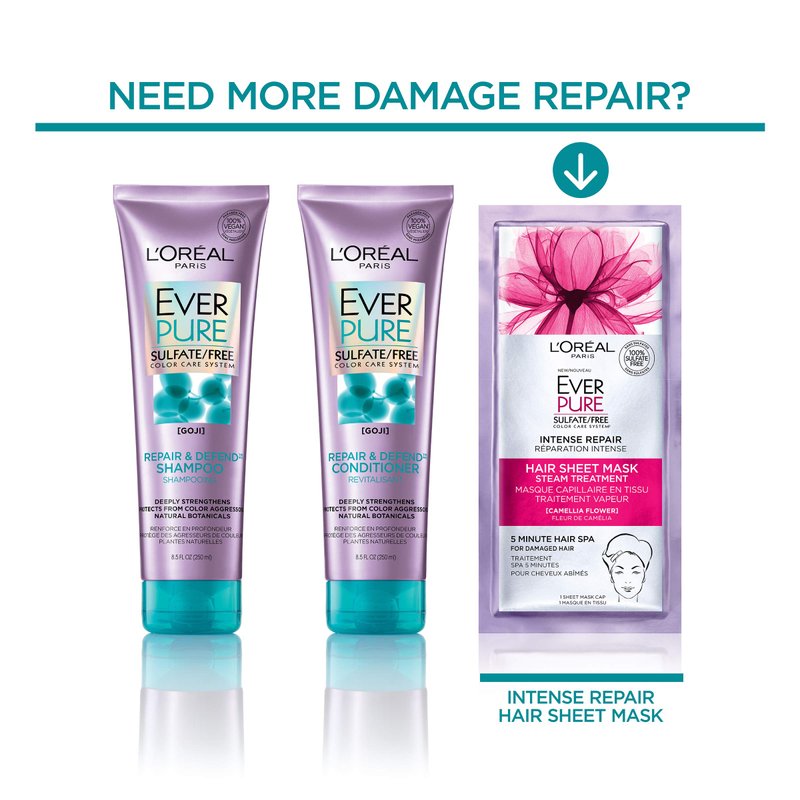 L'Oreal Paris EverPure Repair and Defend Sulfate Free Shampoo for Color-Treated Hair, Strengthens and Repairs Damaged Hair, with Goji, 8.5 Fl; Oz (Packaging May Vary)