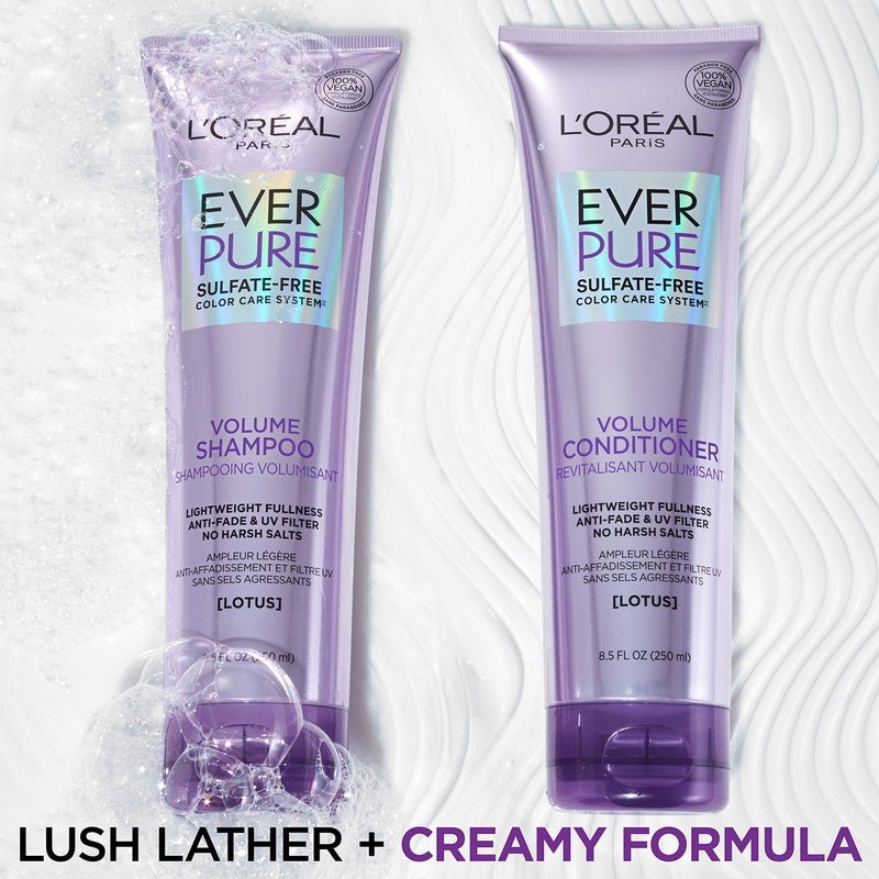 L'Oreal Paris EverPure Volume Sulfate Free Shampoo for Color-Treated Hair, Volume + Shine for Fine, Flat Hair, with Lotus Flower, 2 Count (8.5 Fl; Oz each) (Packaging May Vary)