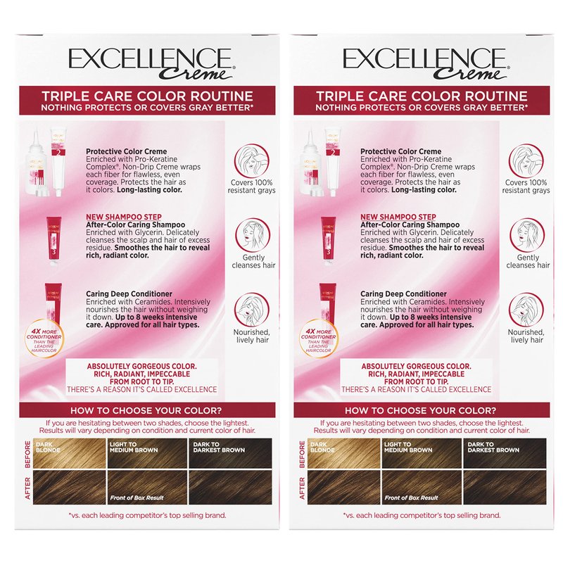 - Gray Coverage Hair Color With Triple Protection: No hair color cares more than Excellence Crème; With our triple protection system that seals, replenishes and conditions, plus 100 percent gray coverage even on stubborn grays.