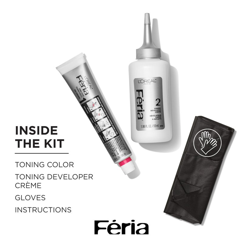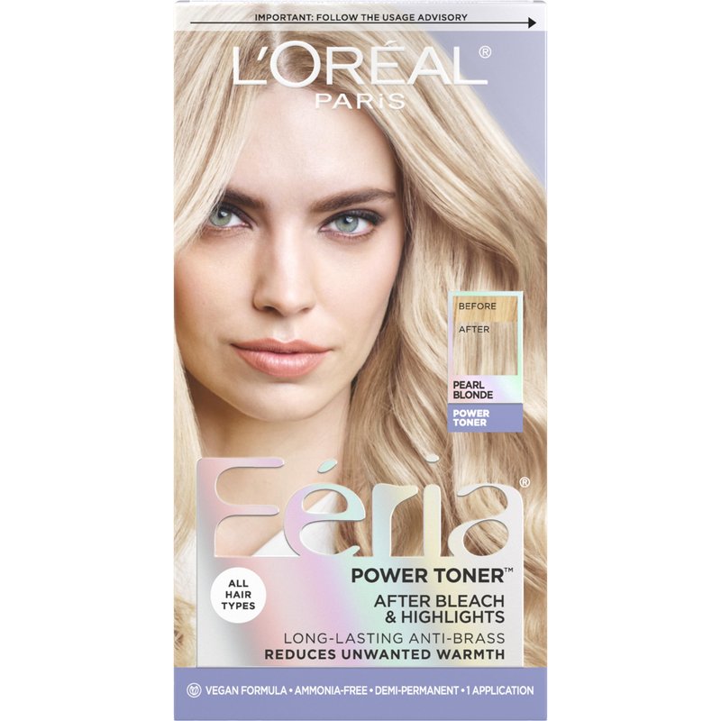 L'Oreal Paris Feria Long-Lasting Anti Brass Power Hair Toner, Ammonia Free Demi Permanent Hair Color, Pearl Blonde Hair Toner, 1 Application