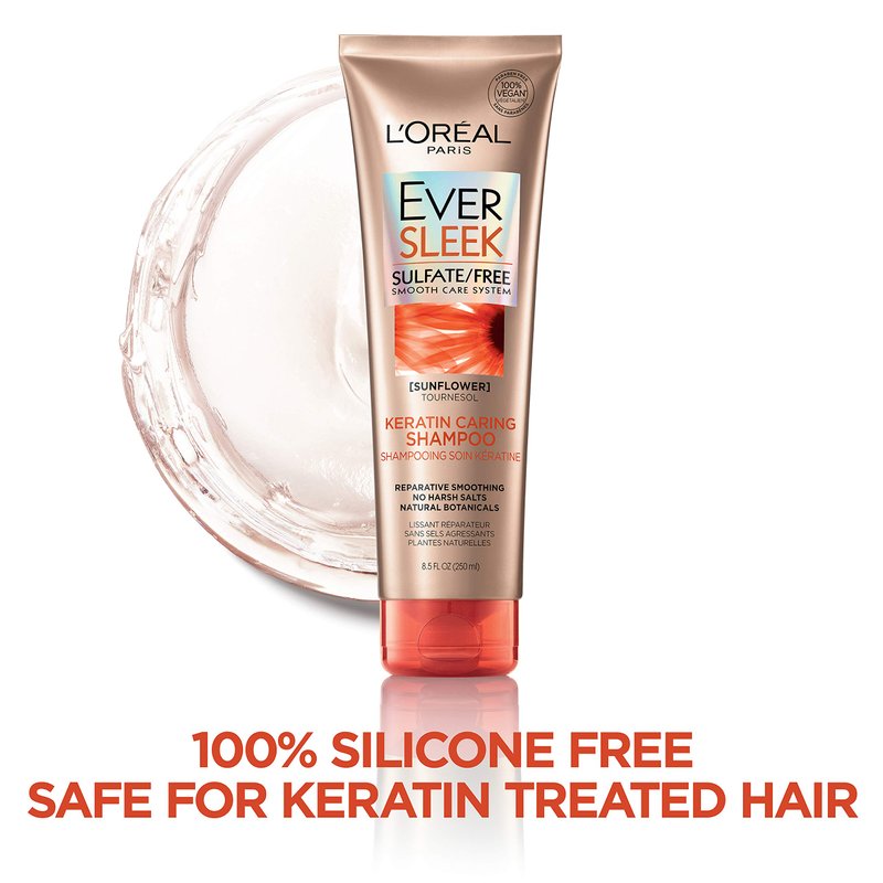 L'Oreal Paris Hair Care EverSleek Keratin Caring Shampoo, with Sunflower Oil, 2 Count (8.5 Fl; Oz each)