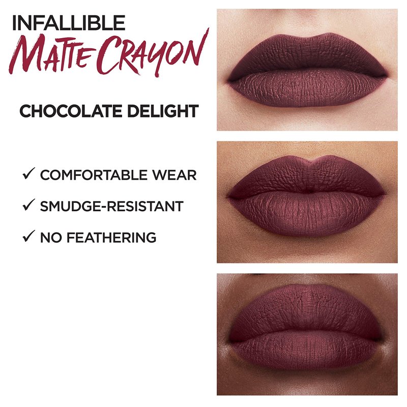 L'Oreal Paris Infallible Matte Lip Crayon, Chocolate Delight (Packaging May Vary)
