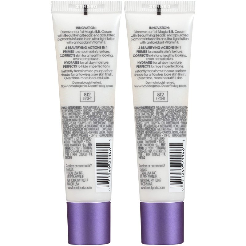 L’Oréal Paris Makeup Magic Skin Beautifier BB Cream Tinted Moisturizer, Light, 1 fl oz, 2 Count
