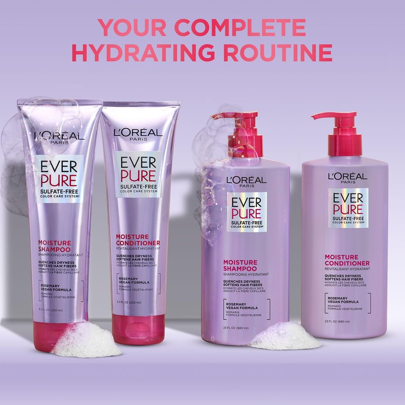 - Moisturizing Conditioner: L’Oréal Paris EverPure Moisture Sulfate Free Conditioner provides moisture without the weigh down. Our hair care system with is formulated for color treated and dry hair