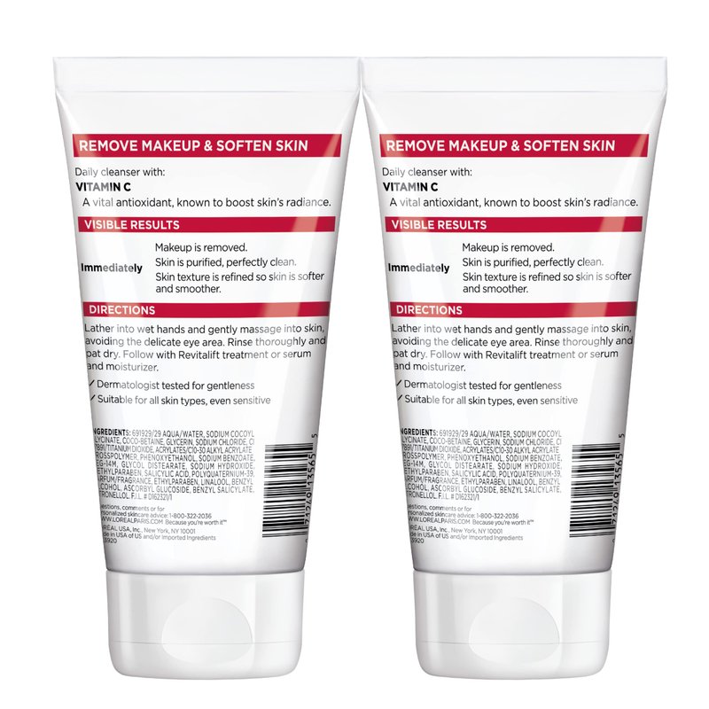 - Style: L'Oreal Paris Skin Care Revitalift Radiant Smoothing Wet Facial Cream Cleanser, 2 Count