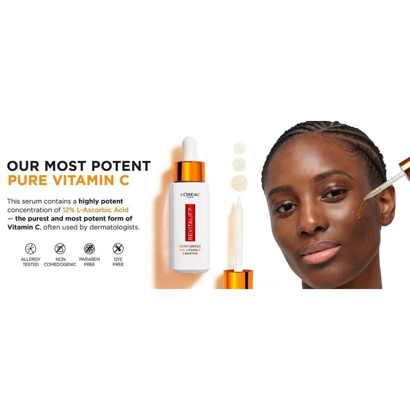 L'Oreal Paris Revitalift Derm Intensives Derm Grade 12% Vitamin C + E + Salicylic Serum, 1.0 Fl. Oz., 0.32 pounds