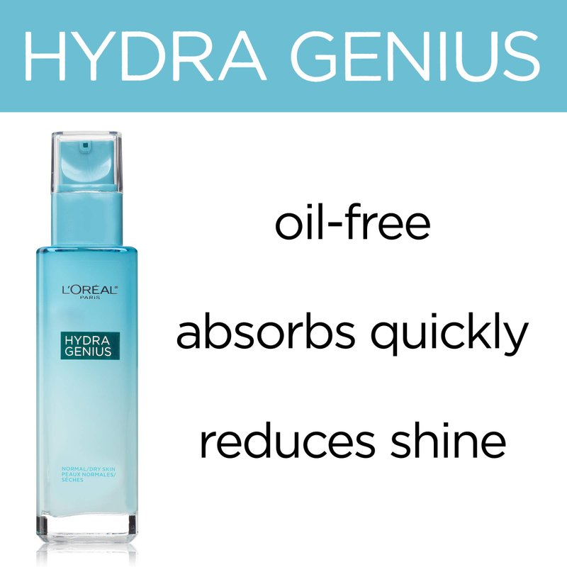 L'Oreal Paris Skincare Hydra Genius Daily Liquid Care Oil-Free Face Moisturizer for Normal to Oily Skin, Hyaluronic Acid Moisturizer for Face with Aloe Water and Hyaluronic Acid, 3.04 fl. oz.