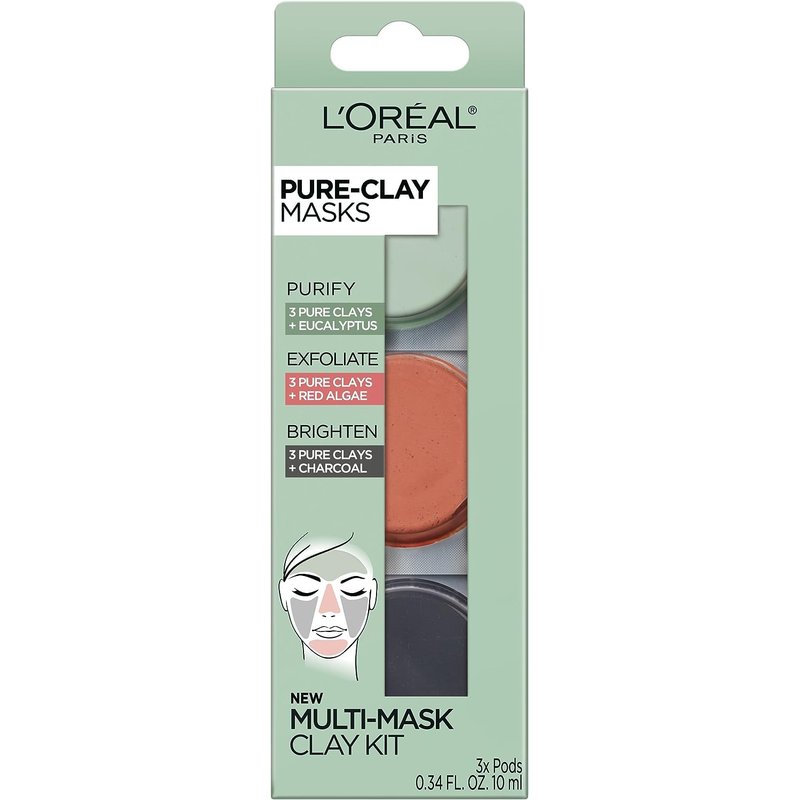 - L’Oreal Paris Pure-Clay face mask trial size set comes with three different masks to try yourself or give as a gift! Use to multi-mask or to address specific skin concerns and transform your skin in just 10 minutes