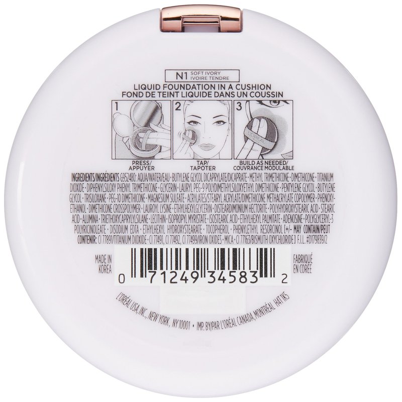 L'Oréal Paris True Match Lumi Cushion Foundation, N1 Soft Ivory, 0.51 oz.