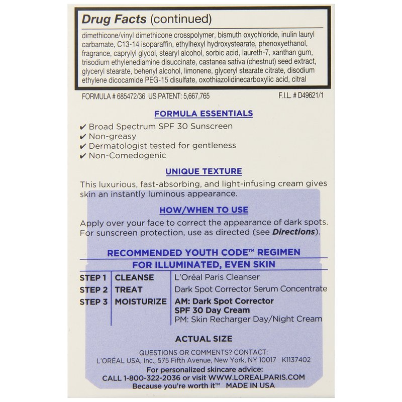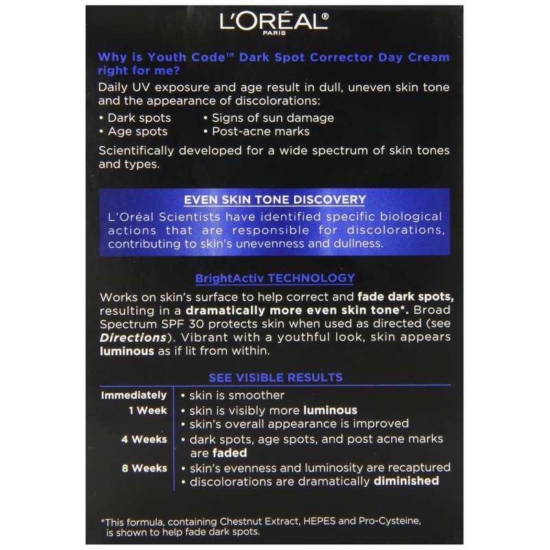 L'Oreal Paris Youth Code Dark Spot Corrector Facial Day Cream SPF 30