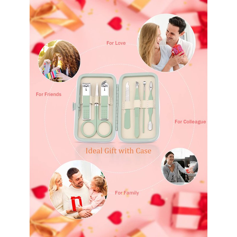 Lorvain Manicure Set, 7PCS Professional Grooming Care Tools Men Women Nail Clipper Set Stainless Steel Toe Finger Nail Clippers with Portable Travel Case Pedicure Care Tools for Travel or Home (Green)