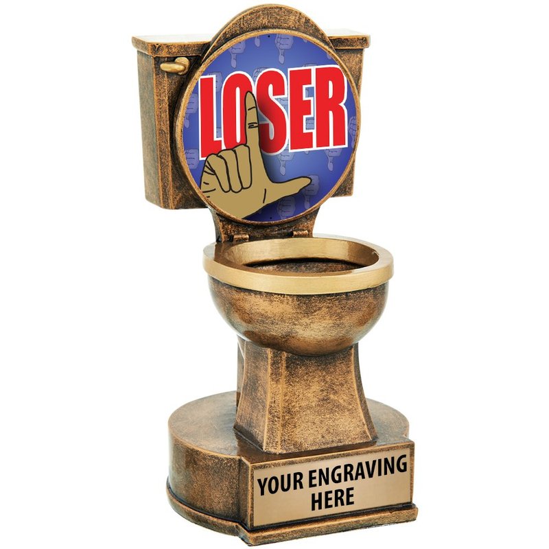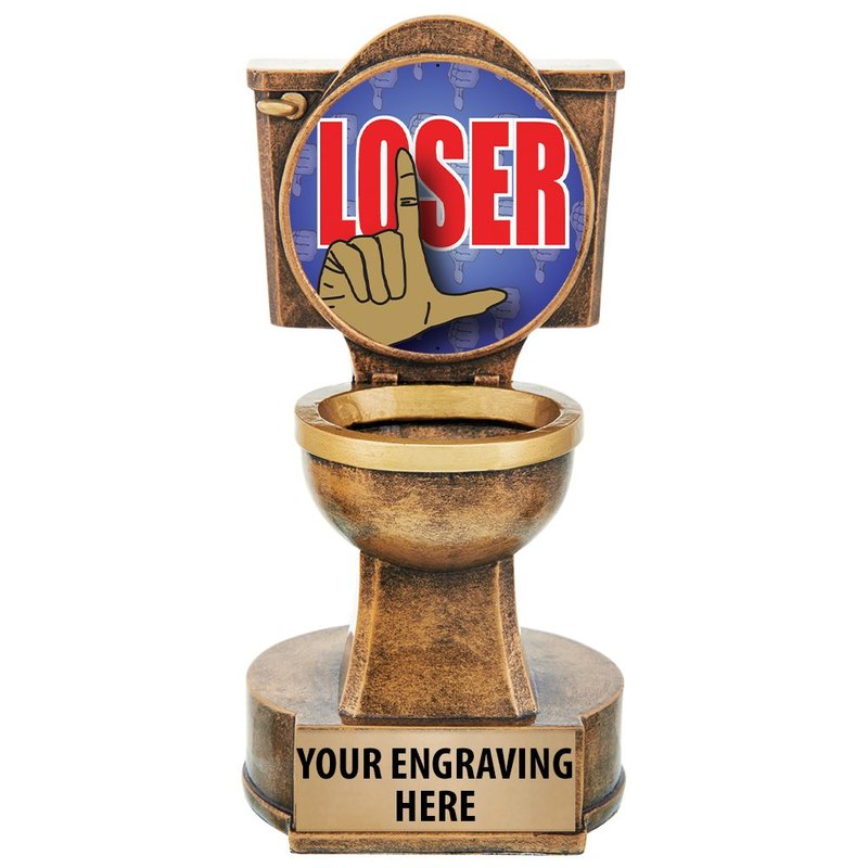 Loser Trophies - Be A Funny Guy Or Gal And Reward Your Lowest Scoring Participants With Crown's For The Loser Toilet Sculpture Trophy. It's The Gag Award Worth Losing To Win!
