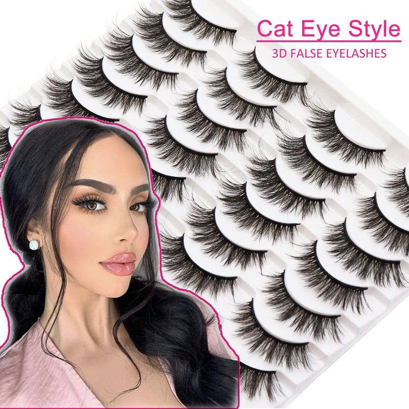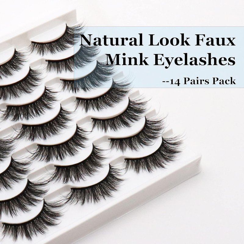 Losha Eyelashes Natural Look Faux Mink Lashes Pack Handmade Fluffy False Eyelashes 14 Pairs Cat Eye Lashes (54)
