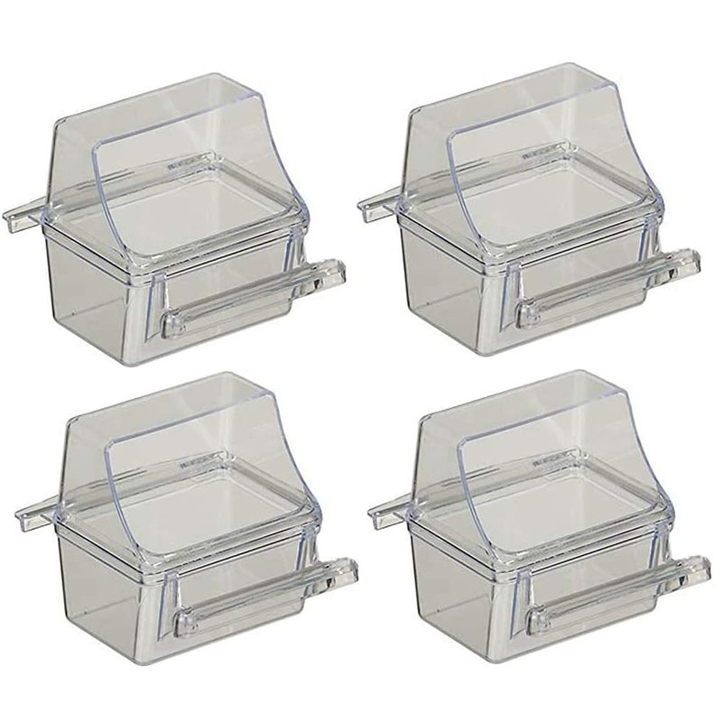 Lot of 4 Clear Transparent Bird Cage Birds Feeding & Watering Feeder Cups