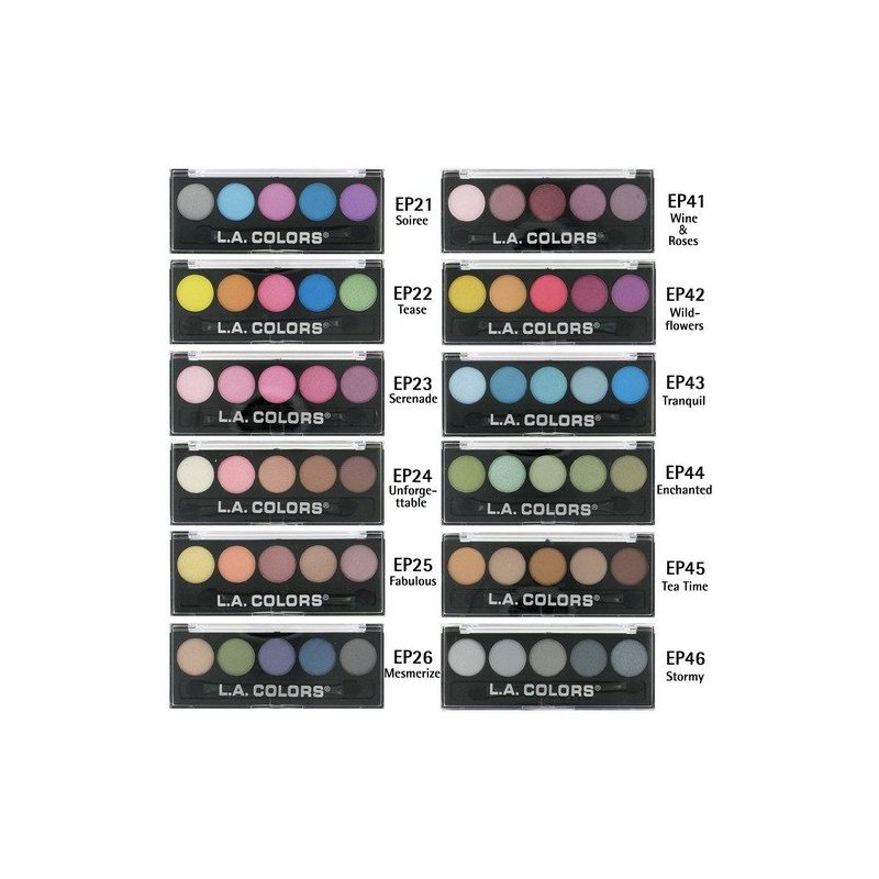 25 eye palette of designer colors from L.A.Color. These color combinations will create an elegant look for your eyes. These eyeshadows will come in 5 kits which each have 5 different colors. This will give you a total of 25 different colors. 25 colors is plenty to get creative with and find new looks! Reveal the inner artist within! Create an endless array of inspired looks for your eyes! Order more now and save.
