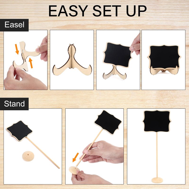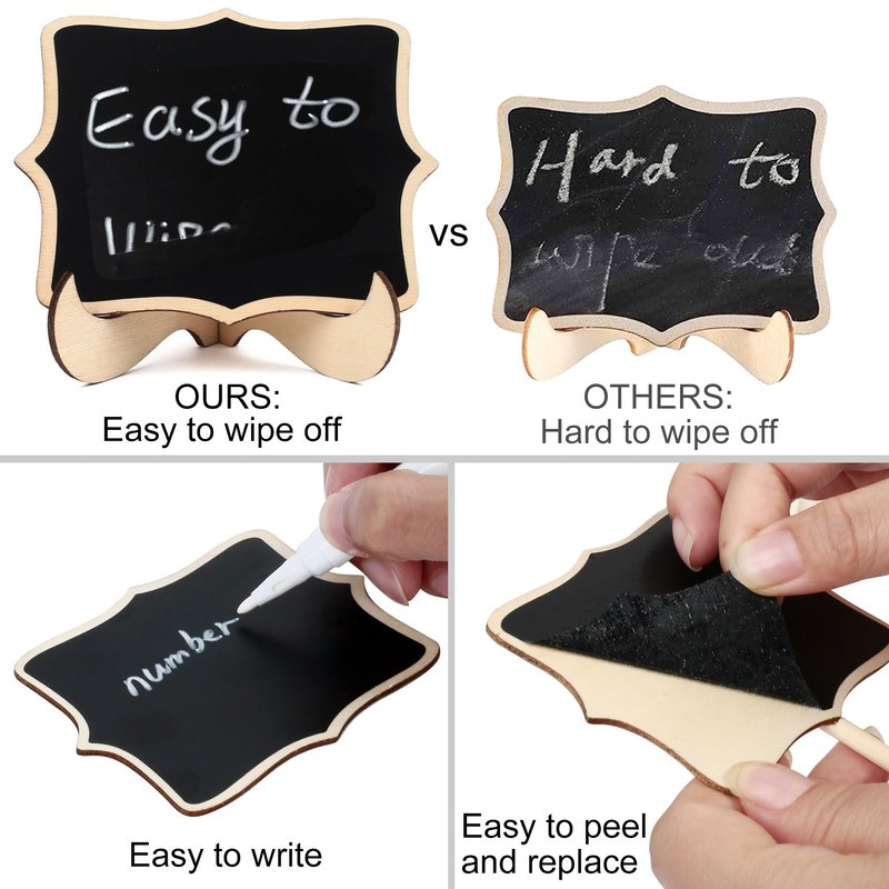 - Multifuctional Mini Chalkboard Sign: Whether you're planning a wedding, buffet, party, family get-together, or holiday events; these chalk board signs are perfect for wedding signs, birthday parties, table numbers, seat assignments, name tags, place cards, food display labels, buffet signs, plant labels,et