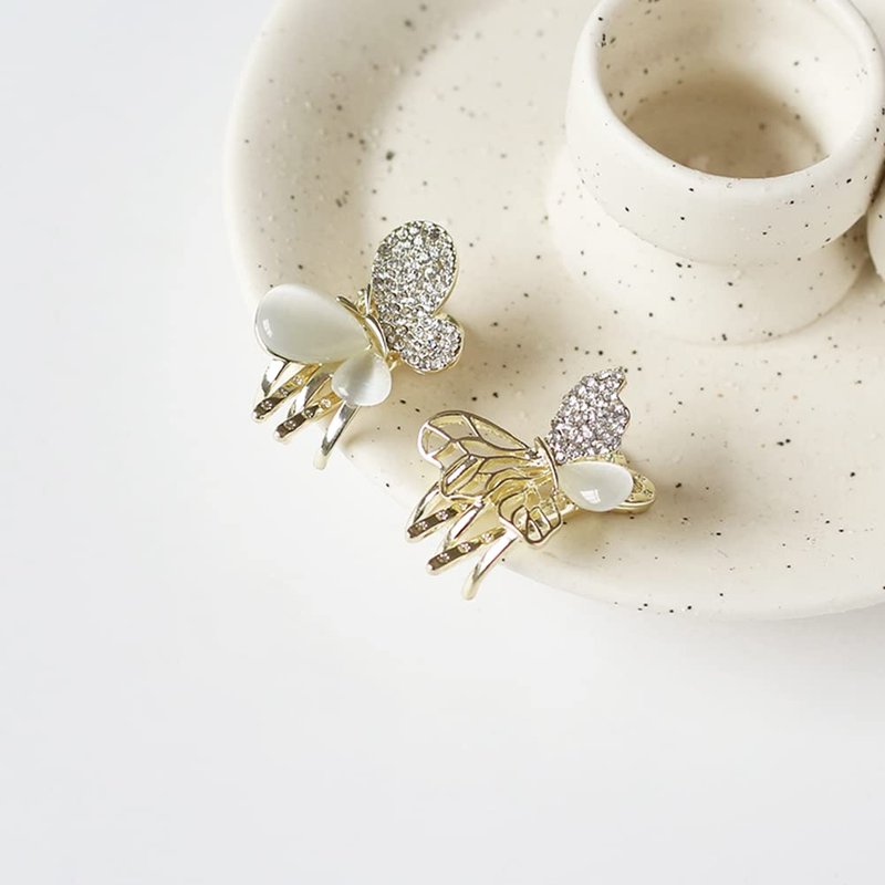 Loudy ZDZ Elegant Stylish Exquisite Butterfly Small Hair Claw Clips Barrettes, Made Of Opal, Rhinestone And Alloy, Special Designed For Women, Girls And Ladies (2 Pcs)