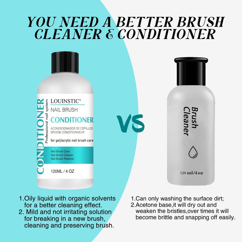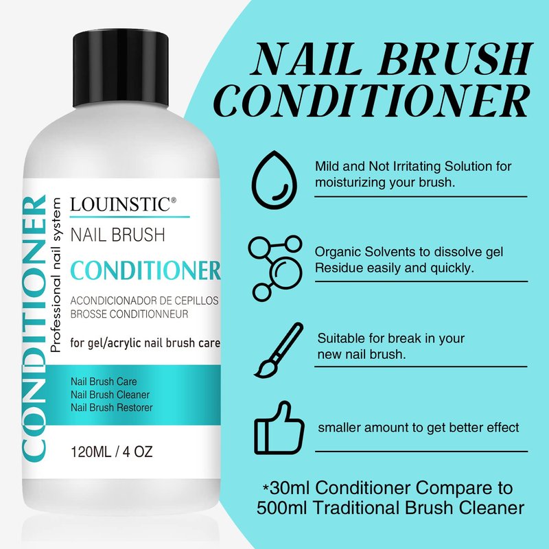 - 💚WIDE APPLICATION:1,You can apply it as gel brush cleaner,nail acrylic brush cleaner,nail art paint brush cleaner,etc. it will dissolve gel/glitter residue in your brushes easily and quickly. 2.You can apply it as a nail brush conditioner/preserver for your expensive kolinsky acrylic nail brush & gel nail brush to keep soft texture and expand the life. 3. You can use it as a solution to break in a new nail brush.