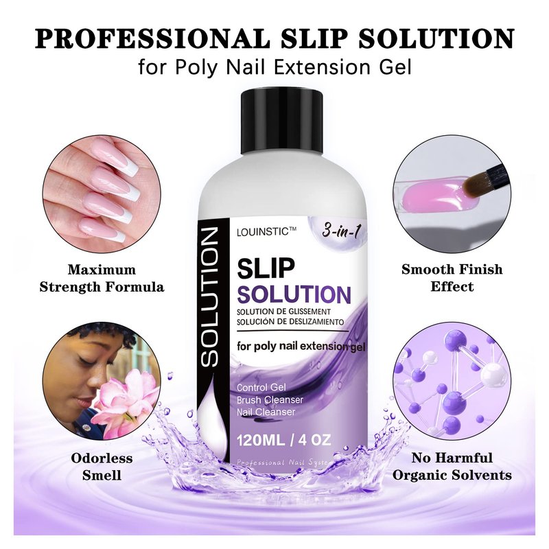 - 【LOUINSTIC PolyGel Slip Solution 4 OZ】-This is a brand new 3-in-1 formula slip solution for polygel nail kit with a polygel brush for nails and 20pcs lint-free nail cotton pad. It's a perfect supplement and tools for your polygel kits and suitable for salon and home use.