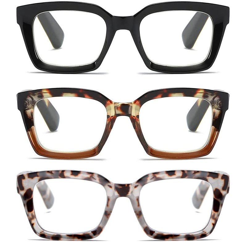 LOUOL 3 Pack Readers for Women Oprah Style Square Reading Glasses with Spring Hinge Blue Light Blocking for Men Ladies +1.5