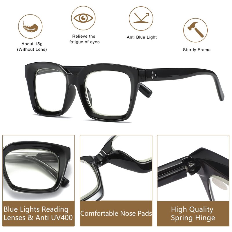 - 【Anti Blue Light Readers】Blue Light Blocking Glasses can effectively block harmful blue light coming from phones, computer monitors, gaming, and other devices. Reduce eyestrain, enjoy your digital timeand sleep better.