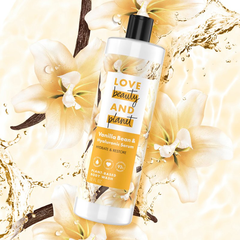- PLANT-BASED CLEANSERS & SKIN CARE INGREDIENTS: Love Beauty and Planet Vanilla Bean & Hyaluronic Serum Body Wash is rich in lather and beautifully scented, leaving skin moisturized and restored.
