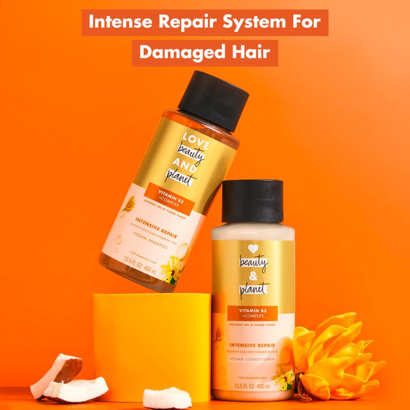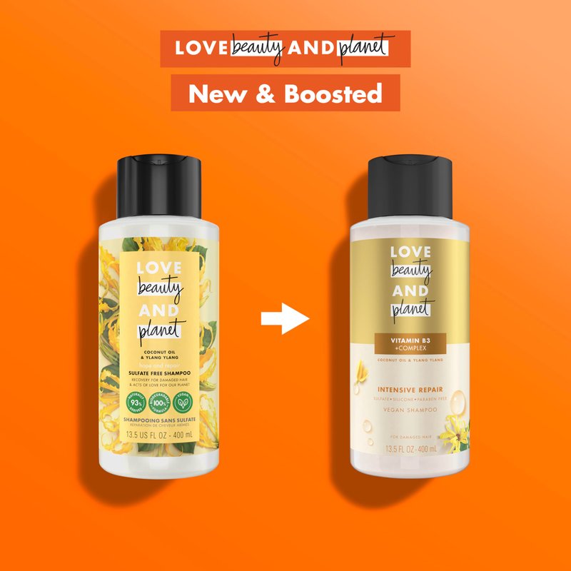 Love Beauty and Planet Shampoo with Vitamin B3 Coconut Oil & Ylang Ylang for Intensive Repair for Damaged Hair Sulfate, Silicone, & Paraben Free. Cruelty-Free. 13.5 oz